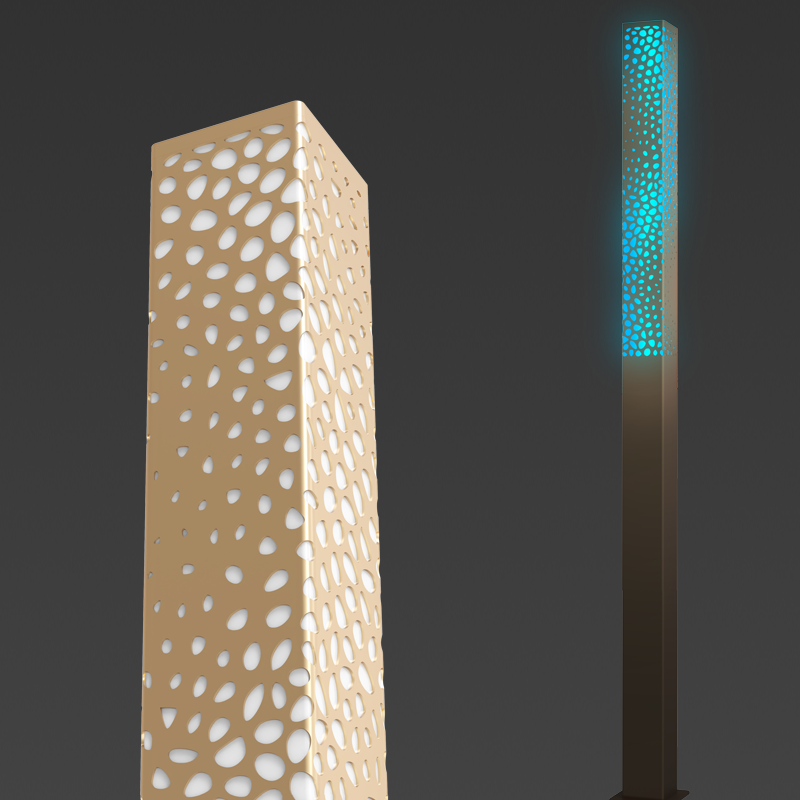 燈型采用藝術鏤空做裝飾設計,夜晚透光獨具藝術特色,整體造型簡約現代,新穎獨特。