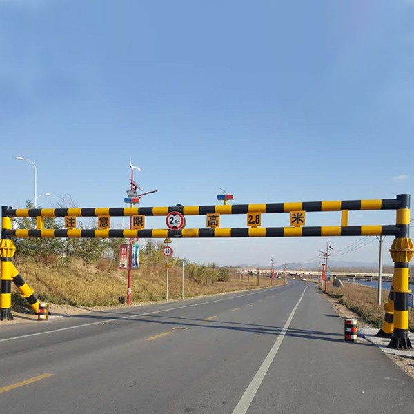 限高龍門架是用于橋梁、涵洞、隧道入口處、城市部分道路入口處的門型構架,一般為鋼結構焊接而成,作用是限制通過車輛的高度,起防護橋梁、涵洞、隧道、城市道路的作用。
