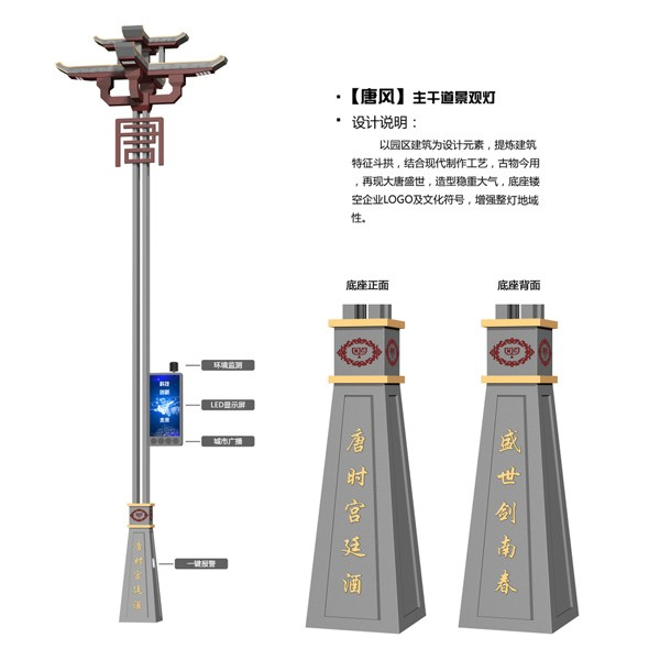 高度:3.5-4.5米主光源:LED模塊裝飾光源:LED燈帶桿體材質:Q235鋼材